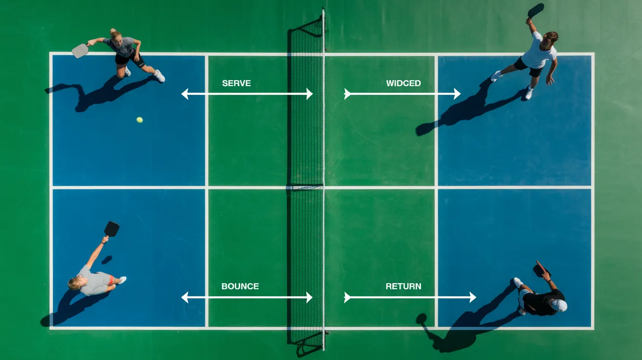 Now you can start volleying. This rule slows down the start of rallies and prevents people from rushing the net immediately. Smart and fair.